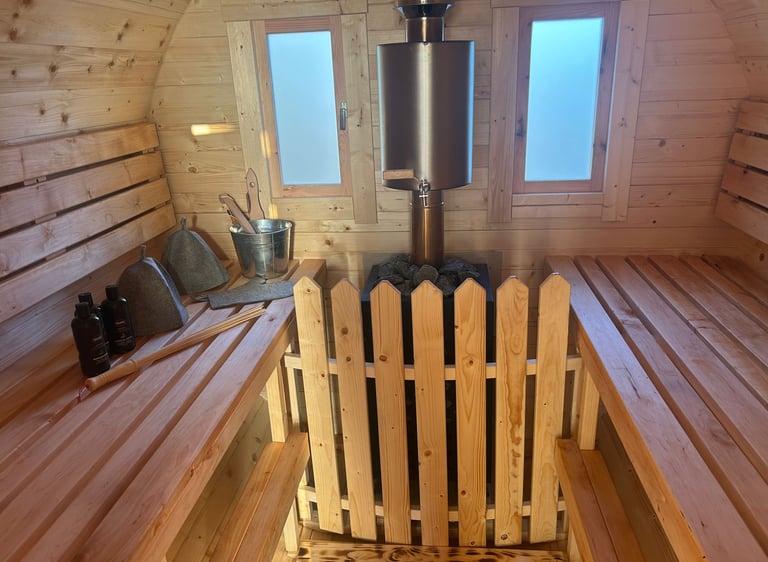 Мы предоставляем в аренду кубл с наружной печью и/или баню на прицепе — идеально для отдыха на свежем воздухе.