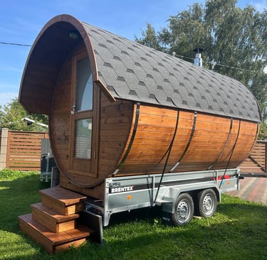 Сдаём в аренду уютную баню на прицепе — круглая, с предбанником и регулировкой уровня, быстро нагревается и сделана из качественных материалов. Комфортно размещает до 3–5 человек для полноценного отдыха на свежем воздухе.